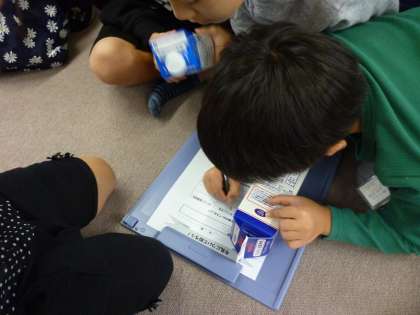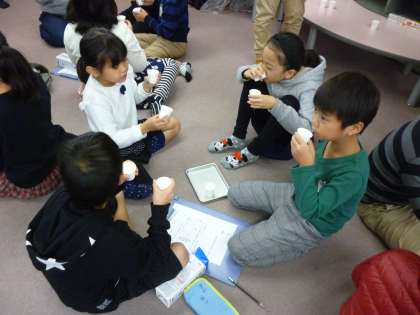 さらに,普通の牛乳と低脂肪牛乳の飲み比べをしました。子ども達はそれぞれの味の違いにおどろいていました。