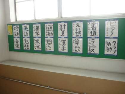『4年生でがんばること』を一人一人が考え,毛筆で表現しています。とてもきれいな字で,そして,やる気が感じられる作品ばかりで,校長先生は感動しましたよ!みんな!!全力チャレンジだ〜!