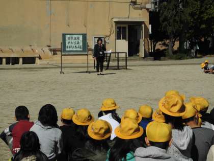 10連休明け,五月晴れの運動場で今年度最初の朝会をしました。5月は憲法月間。校長先生からは,金子みすずさんの詩を引用して,それぞれの個性を大切に尊重し,良さを見つけていこう(みんなちがってみんないい)というお話を聞き,みんなで考えました。
