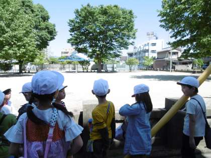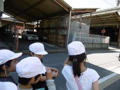 青空の下,二年生は生活科の学習で校区探検に行きました。