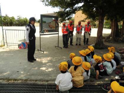 南警察署の方と,見守り隊の方にご協力いただき,交通安全教室がありました。