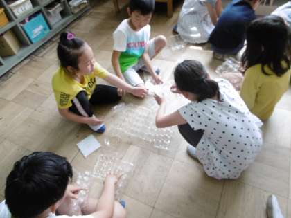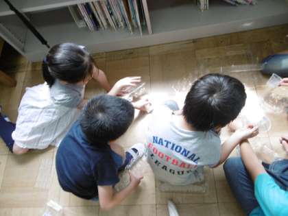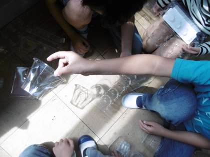 透明なパックやケースに光を通して,影の映り方を楽しみました。