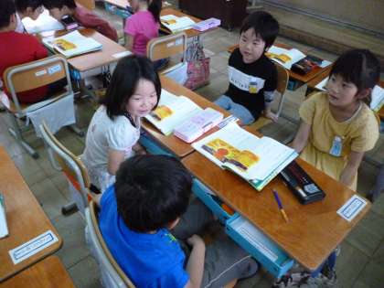 友だちとアイディアを出して考え,実際に音読に合わせて体を動かしました。
