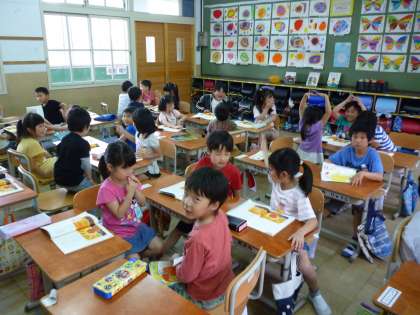 国語「あさのおひさま」の学習で言葉に合わせた動きを考えました。