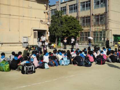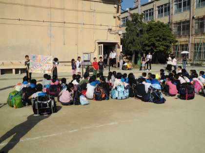 今日から4年生はみさきの家宿泊学習です。大きな荷物を背負って登校した子どもたち。出発式で少しずつ声も出るようになり,全員元気に出発しました。