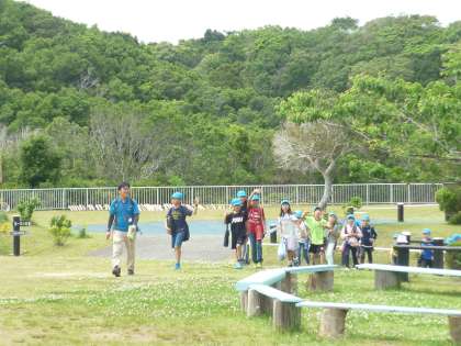 賢島港から船に乗り,なかよし港に到着!歩いて山?を越えたらそこは「みさきの家」です!テンションがあがってきました!一足先に到着していた校長先生に,みんなが元気に手を振ってくれました。