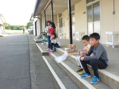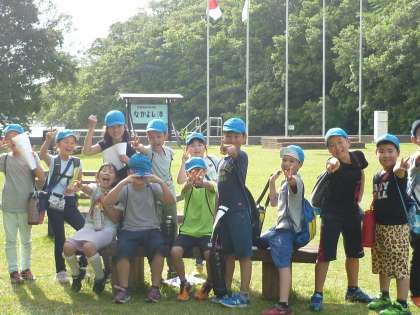 予定していた時間より短くなり,クイズはなしにしてまわった浦山ラリーです。山のとりでは高いところにあり,とっても涼しくてさわやかな場所でした。船で到着したなかよし港もコースの中にありました。大きなカニが歩いていたり,ウシガエルが低い声で鳴いていたり・・・終了後は入浴,そして,ほっと一息ジュースタイムでした!