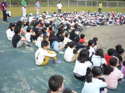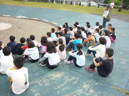 それぞれの学校の校歌を歌い,旗をあげていきます。今日もさわやかな朝です!