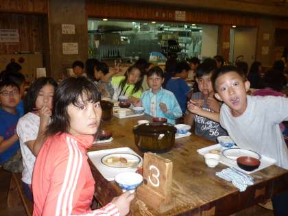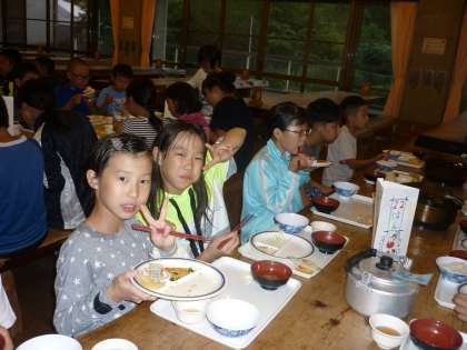 おいしく夕食をいただきました!ごちそうさまでした!!夜に予定していた天体観測はDVD鑑賞に変更となりました。