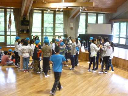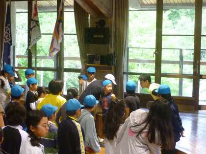 今日は本校だけの朝の集いです。オリエンテーションホールで行いました。時間に遅れないように,早め早めの行動ができています!まずは班単位で健康観察です。