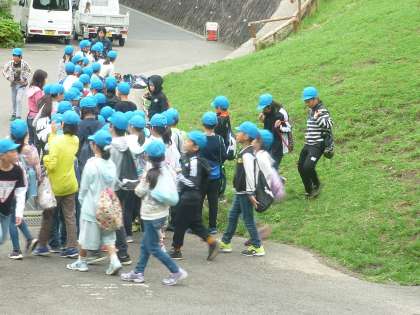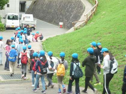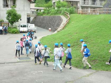 ナップザックのひもが引っ掛かると大変です。荷物を置いて活動します!