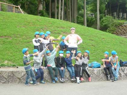 冒険の森を堪能して,とても満足げな表情です!そして,学生ボランティアの平塚先生が応援に来てくださいました!