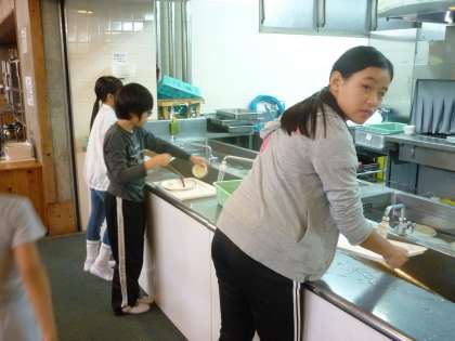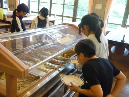 バイキング形式に慣れてきて,おかずを選ぶのも,食器を簡単洗いして返却するのも要領よくなってきましたよ
