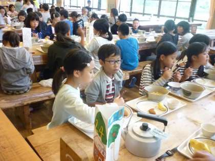 野外炊事でカレーライスを作るというのに,お昼のメニューもカレーライス!やっぱり塩ラーメンとごはんの方が人気でしたね。
