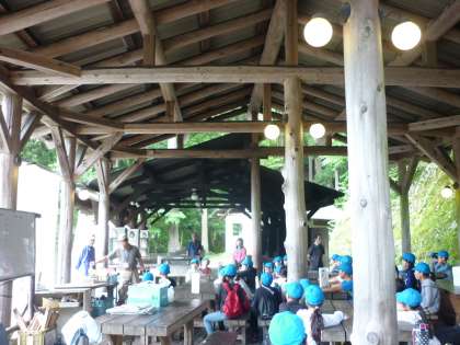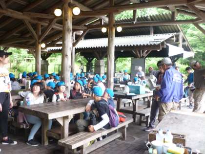 山の家の先生から手順を説明していただき,いよいよ野外炊事が始まります。とびっきり美味しいカレーライスを,班で協力して作ります!!