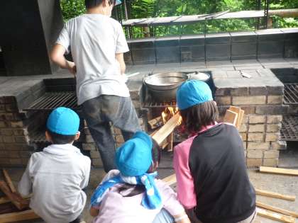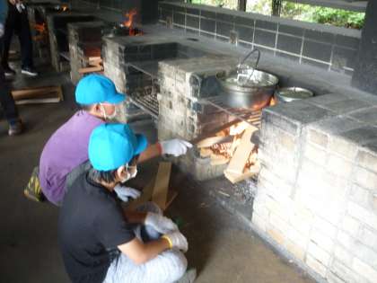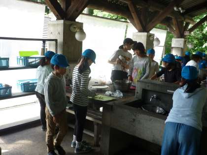 食器やお鍋を洗う,野菜を切る,火床をつくるなど,それぞれに役割があり,班で協力して活動します。