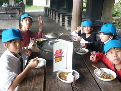 ほんとうにおいしいんです!緑いっぱいの自然の中で,友だちと食べる食事って最高ですね!