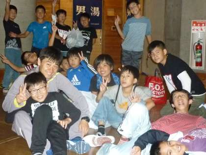今日のお風呂は2組が先に入ります。大浴場が女子,中浴場と小浴場が男子になります。早く汗を流したい!!