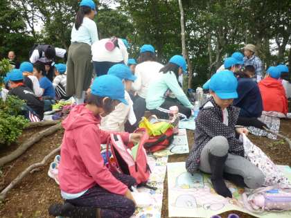 食堂で用意していただいたおにぎり弁当を,山頂でほおばります!うまいっ!!がんばった自分にごほうびです。
