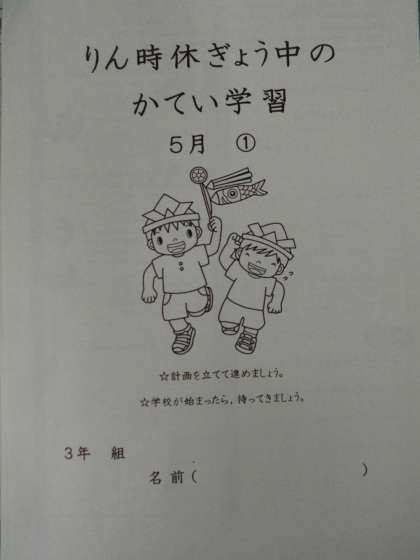 また,漢字ドリルや算数ドリル,ノートにはみんなの名前がまだ書かれていないので,休業中に書いておいてください。