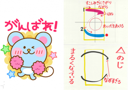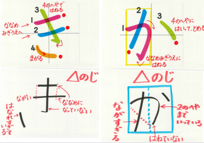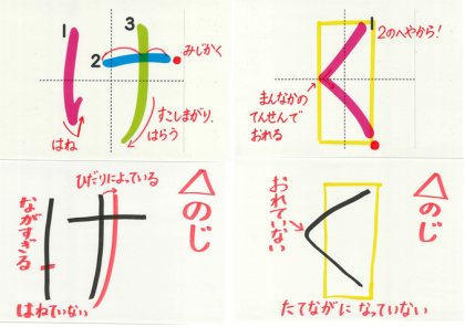 「かきくけこ」 の ひらがなを かくときに きをつけてほしいことを のせておきます。