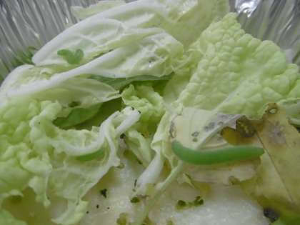 とってきた卵から,2日ほどで小さな緑色の幼虫になりました。