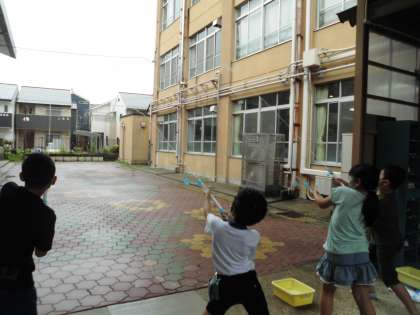 「空気と一緒かな?」「でも,水の体積は圧しても変わらないからなぁ。」