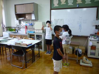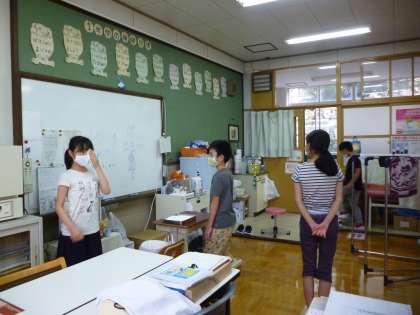 今回は遮眼子ではなく,ティッシュで目を隠して行いました。