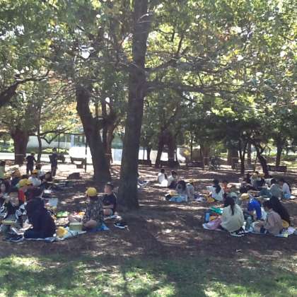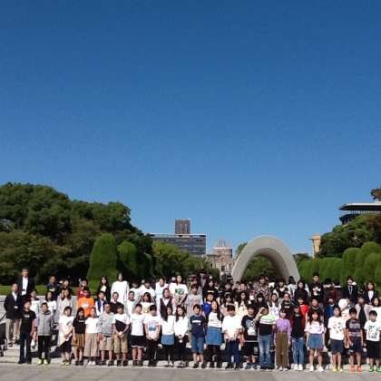 昼食後,学年全体の記念写真を撮りました。撮影後、平和記念公園内を見学しました。