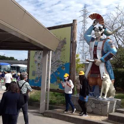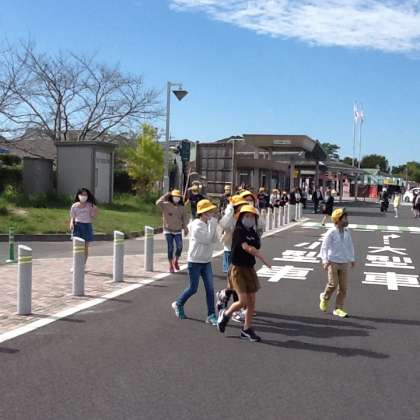 吉備サービスエリアで休憩をとりました。秋晴れでたいへん気持ちの良い天気です。バス内では、大きな声を出さないようにしながら、なぞなぞやクイズを出したり、音楽を聴いたり、友達と話をしたりして、楽しんでいます。