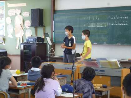 みんなの前での発表は緊張しながらも,個性豊かなリズムの組み合わせで演奏することができました。