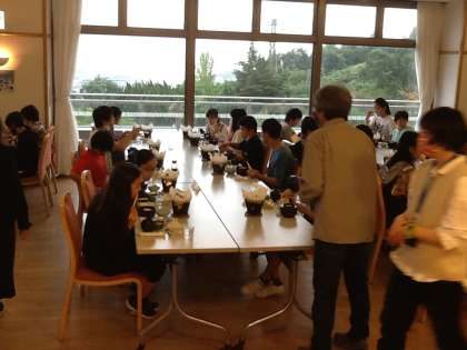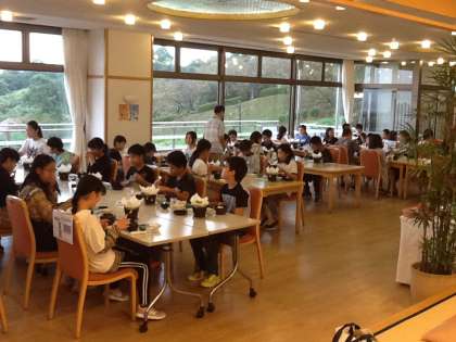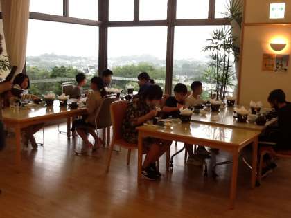 朝食を美味しくいただきました。眠そうな様子もなく、全員元気でした。朝食後、退館式を行い、8時40分に宿舎を出発し、倉敷美観地区へ移動しました。