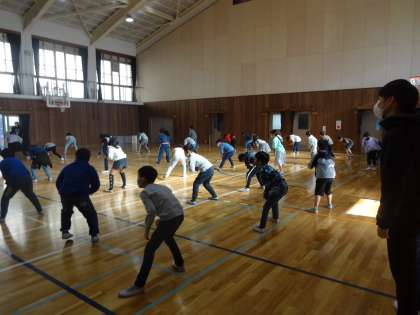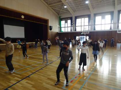 初めに呉竹総合支援学校の紹介を聞き,その後,ソーラン節を一緒に踊りました。