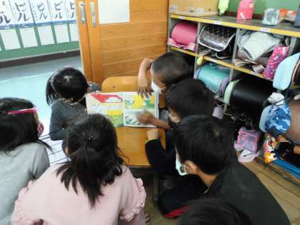 友達の読み聞かせを聞くときは,お話を楽しんで集中して聞いていました。