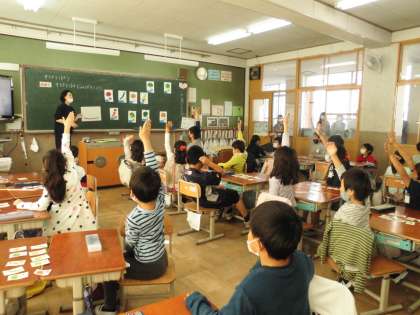 外国語活動「サラダをつくろう」では,友達に英語で自分の好きな野菜を教えて,スペシャルサラダを作ってもらいました。元気いっぱい楽しんで活動していました。