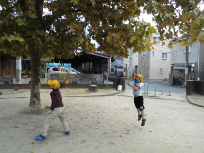 「真っ赤な葉っぱを見つけたよ!」「カエデの実はチクチクするね。」