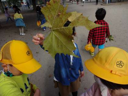 「この葉っぱは,ぼくの顔より大きいよ。」と,子ども達は楽しみながら