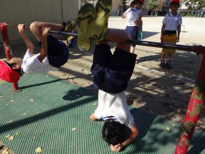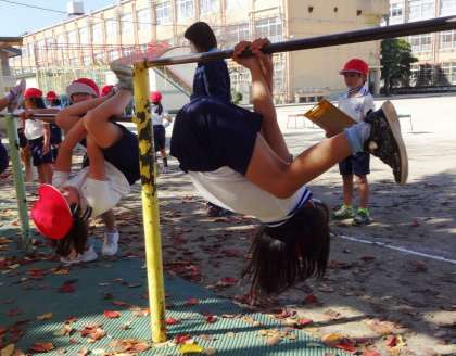 体育で「てつぼうあそび」を学習しています。自分ができる技を練習した後,色々な技に挑戦しています。久しぶりに鉄棒をする子や,回るのが怖いという子もいましたが,頑張って練習をしています。楽しみながら,少しずつ体の使い方を知ることができればいいなと思います。