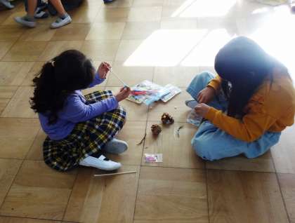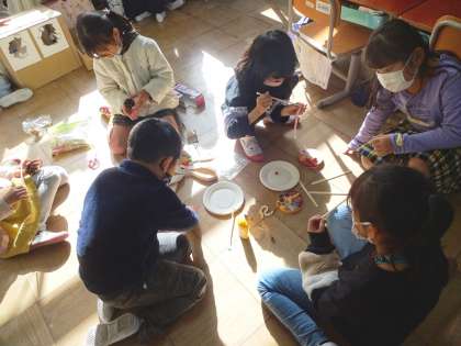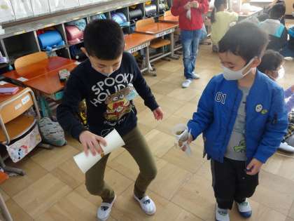 今日は,生活科の秋見つけで集めたドングリやマツボックリを使って遊びました。マツボックリけん玉やドングリゴマなど色々なおもちゃを作り,楽しんでいました。