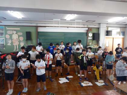 茶色のこびんをきれいに演奏しています。(4年 音楽)
