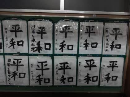 一年間の学習を生かして、横画・たて画・左はらい・点・点画の接し方・左右の組み立て方・筆順のポイントを確認しながら書きました。子どもたちは、集中して書き写していました。