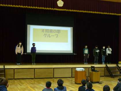 将来の夢について発表し,そのために今頑張っていることを発表しました。保育士,ゲーム会社で働きたいなど,自分の夢を実現するために,これから頑張っていきたいことを発表しました。