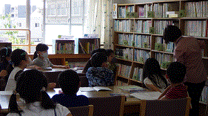 学校司書の先生による図書館オリエンテーションがありました。最初に本を見ないで昔話を一つしてくださいました。子どもたちも最初は楽しみながらリラックススして話を聞いていましたが,気が付くと集中して聞き入っていました。話を聞いた後は,本の探し方を丁寧に教えてくださいました。