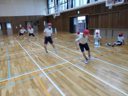 反復横跳びでは,20秒間でどれだけ1m間隔のラインを越えられるか挑戦しました。
