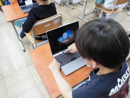 今日は,校長先生にタブレットのログインの仕方をお教えてもらいました。