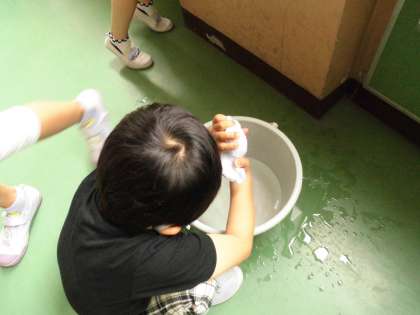 雑巾絞りも上手になりました。