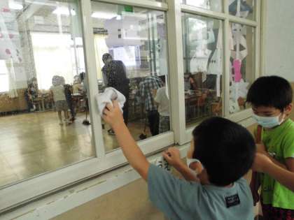 蒸し暑くても一生懸命掃除をしています。