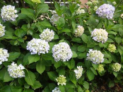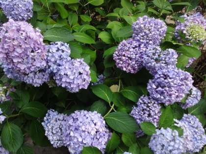 学校の中庭に咲く紫陽花。日に日に花の色が変わっています。