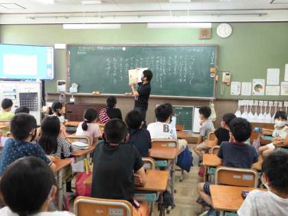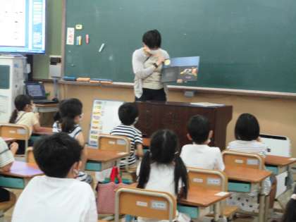 今日は,パワーアップタイムに他のクラスの先生による絵本の読み聞かせがありました。