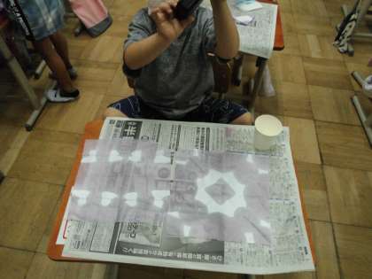 1年生との交流学習の様子です。生活科では朝顔の色水で和紙への色染めを経験しました。また,音楽では,一緒に歌ったりリズム打ちをしたりして楽しんで参加しています。積極的に挙手して,前に出て歌う場面もあります。